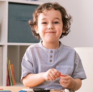 Themed sensory trays and art stations designed to build confidence and early motor skills。